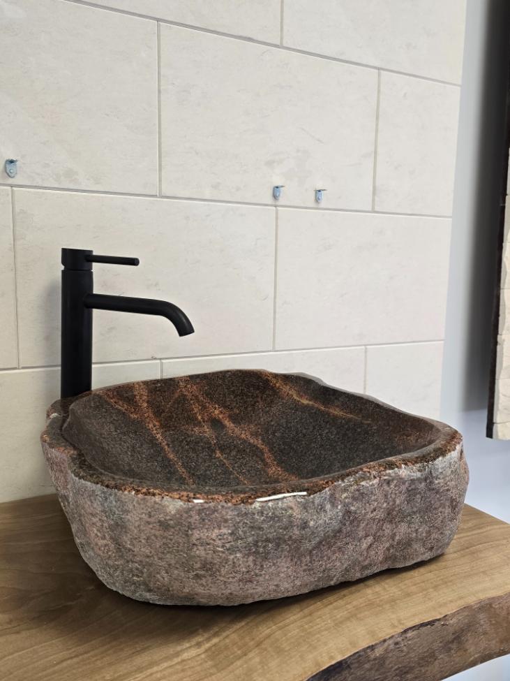 River stone is a hard and durable material, and the smooth polishing of the interior makes it easy to clean. If you want to achieve a completely finished look, combine it with our wood countertops.