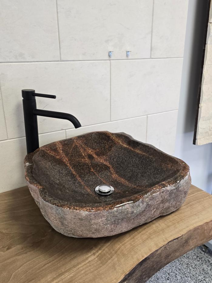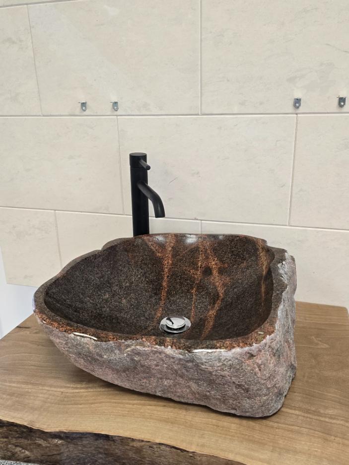 The river stone sink will give a modern style and natural look and complement the unusual design of your bathroom or toilet. It is ideal for modern or rustic interior design.