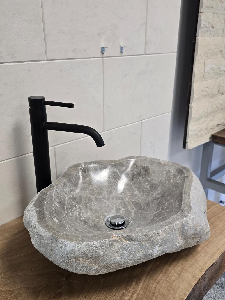 River stone is a hard and durable material, and the smooth polishing of the interior makes it easy to clean. If you want to achieve a completely finished look, combine it with our wood countertops.