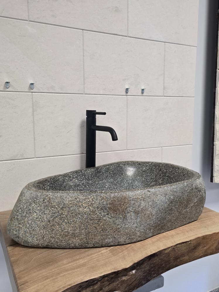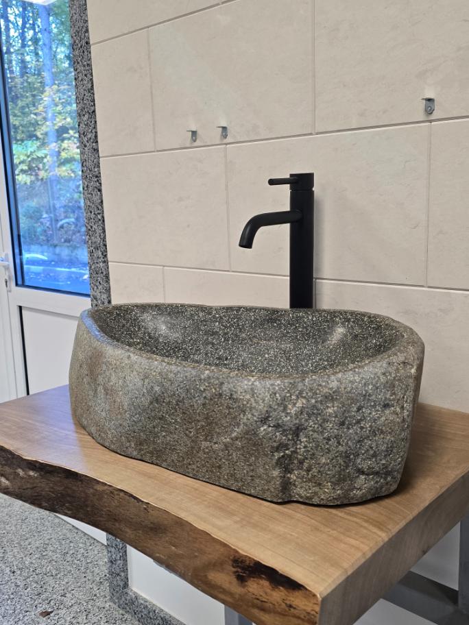 River stone is a hard and durable material, and the smooth polishing of the interior makes it easy to clean. If you want to achieve a completely finished look, combine it with our wood countertops.