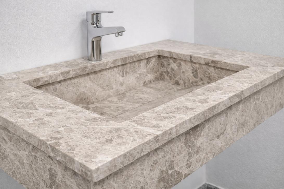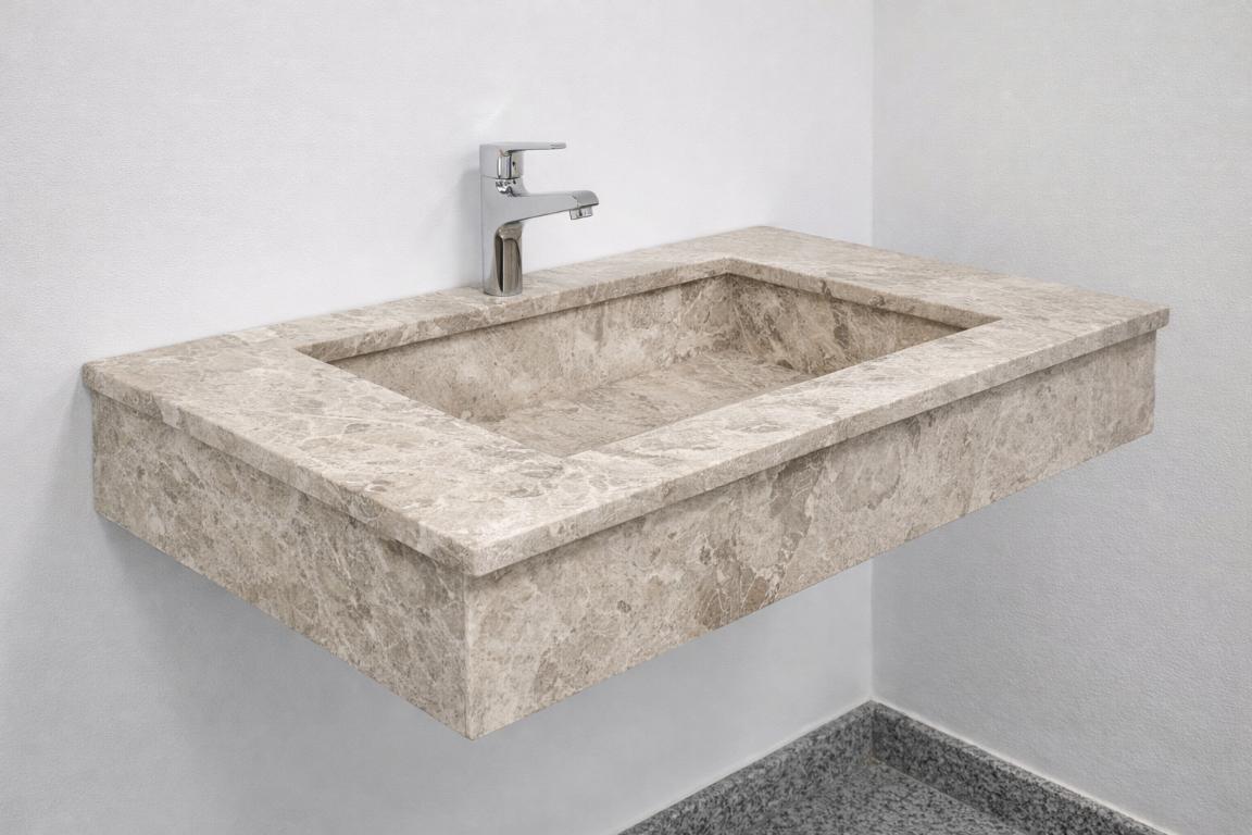 Мраморът се отличава с характерни естествени шарки и нюанси, което прави всеки умивалник уникален. Камъкът е устойчив и подходящ за ежедневна употреба, като придава на интериора луксозно и естествено излъчване.