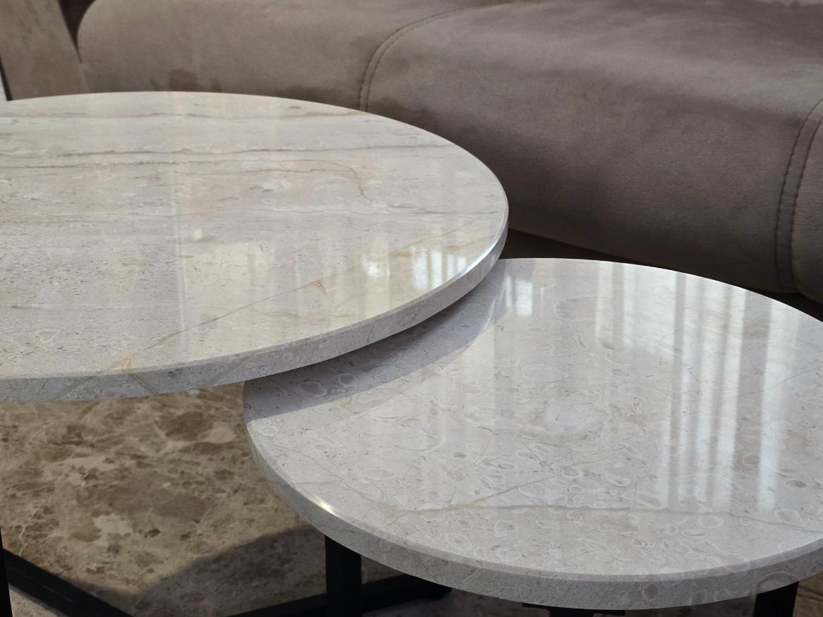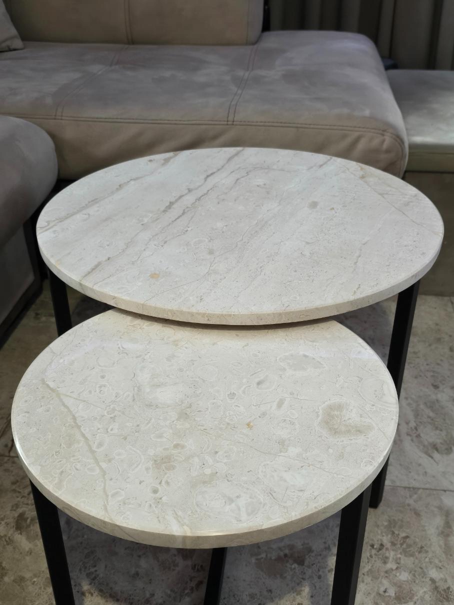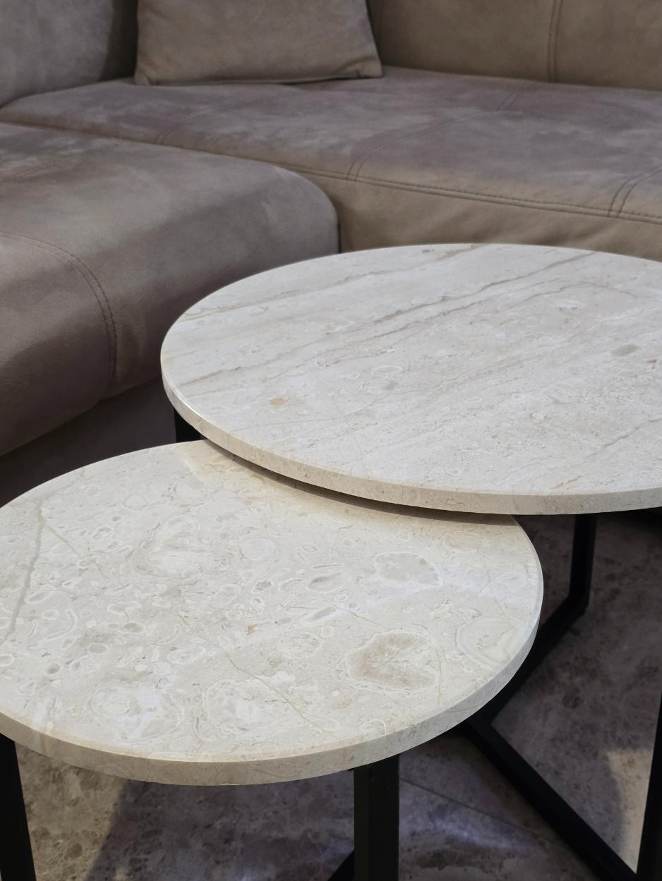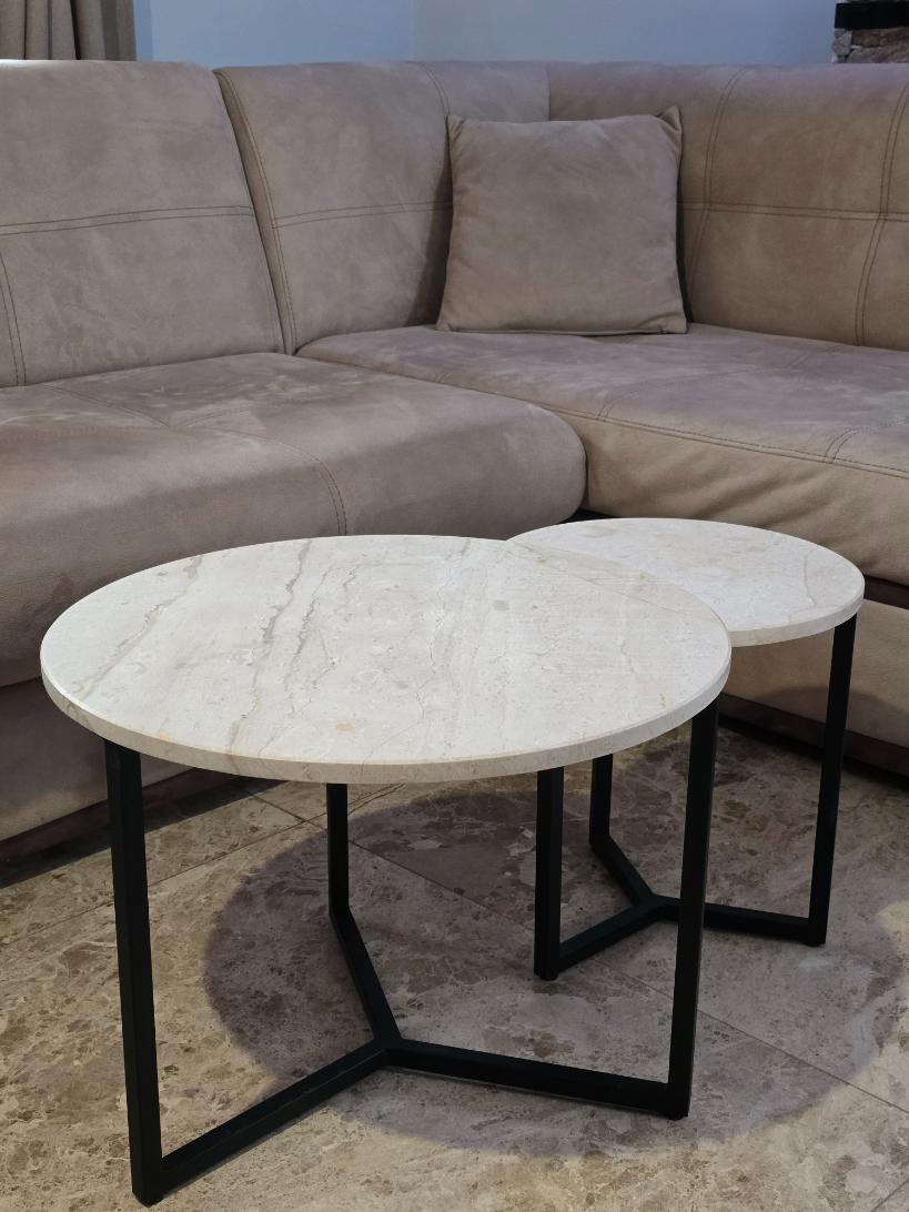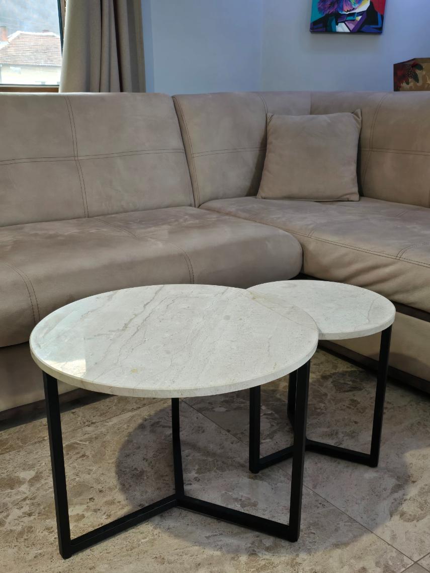 Добави стил и практичност към интериора с този елегантен комплект от 2 мраморни маси.