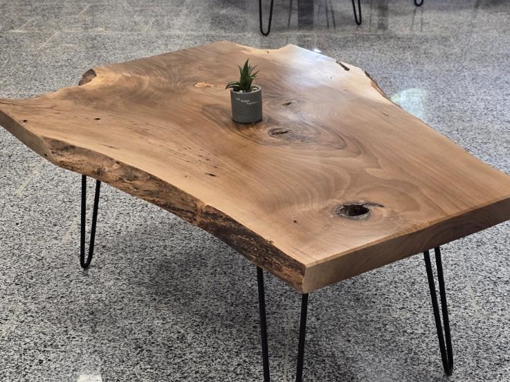 Холна маса от масивен орех с метални крака тип „фиба“.